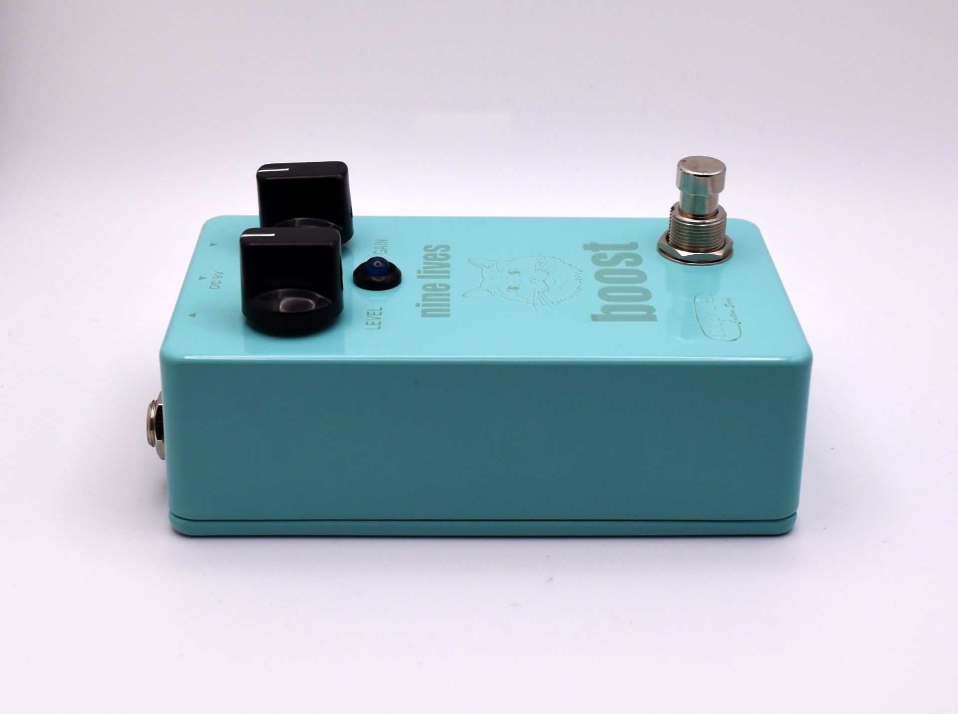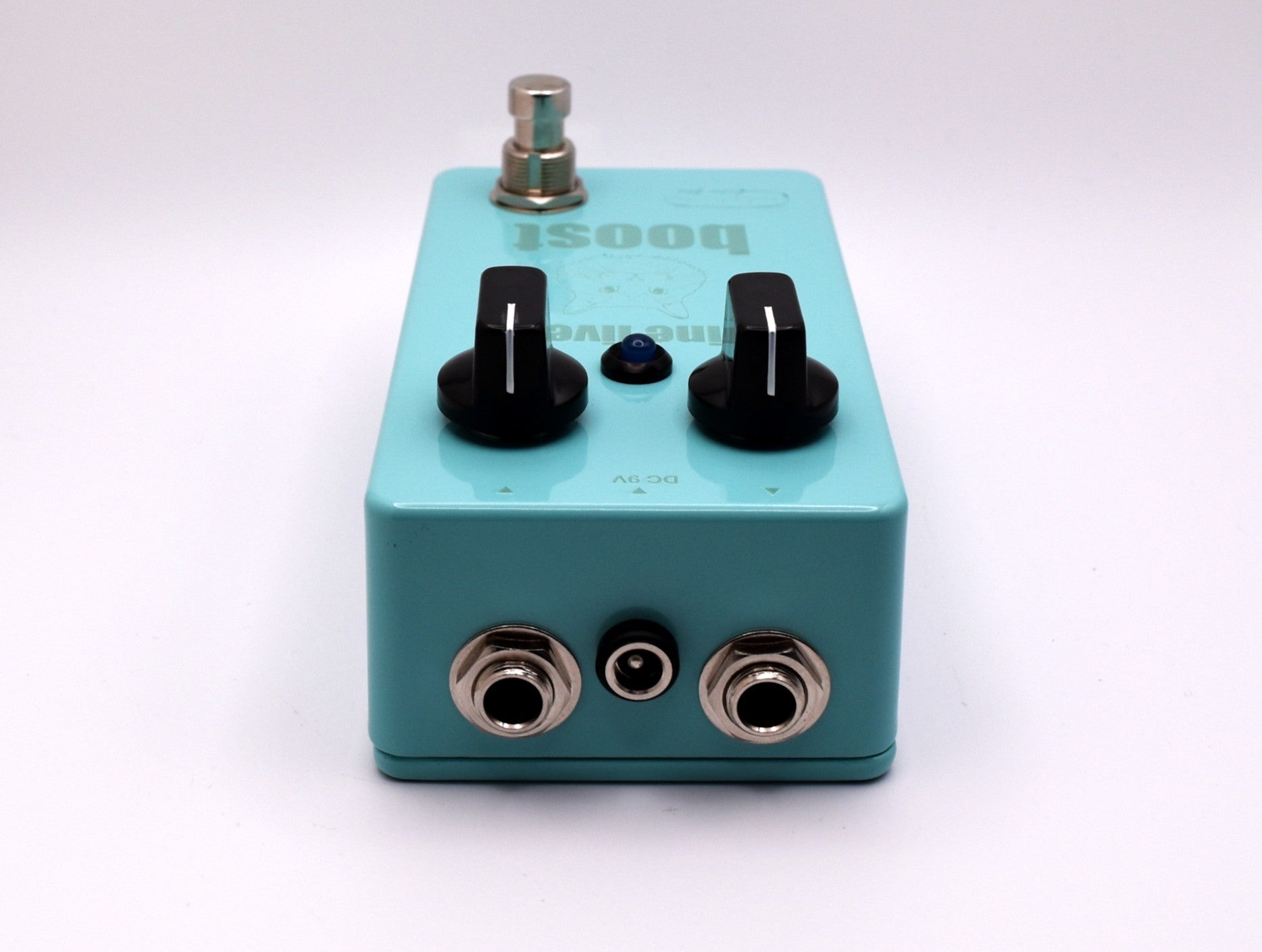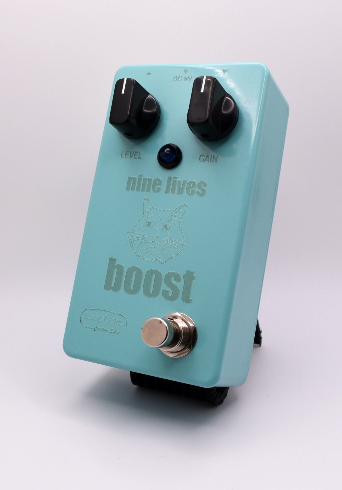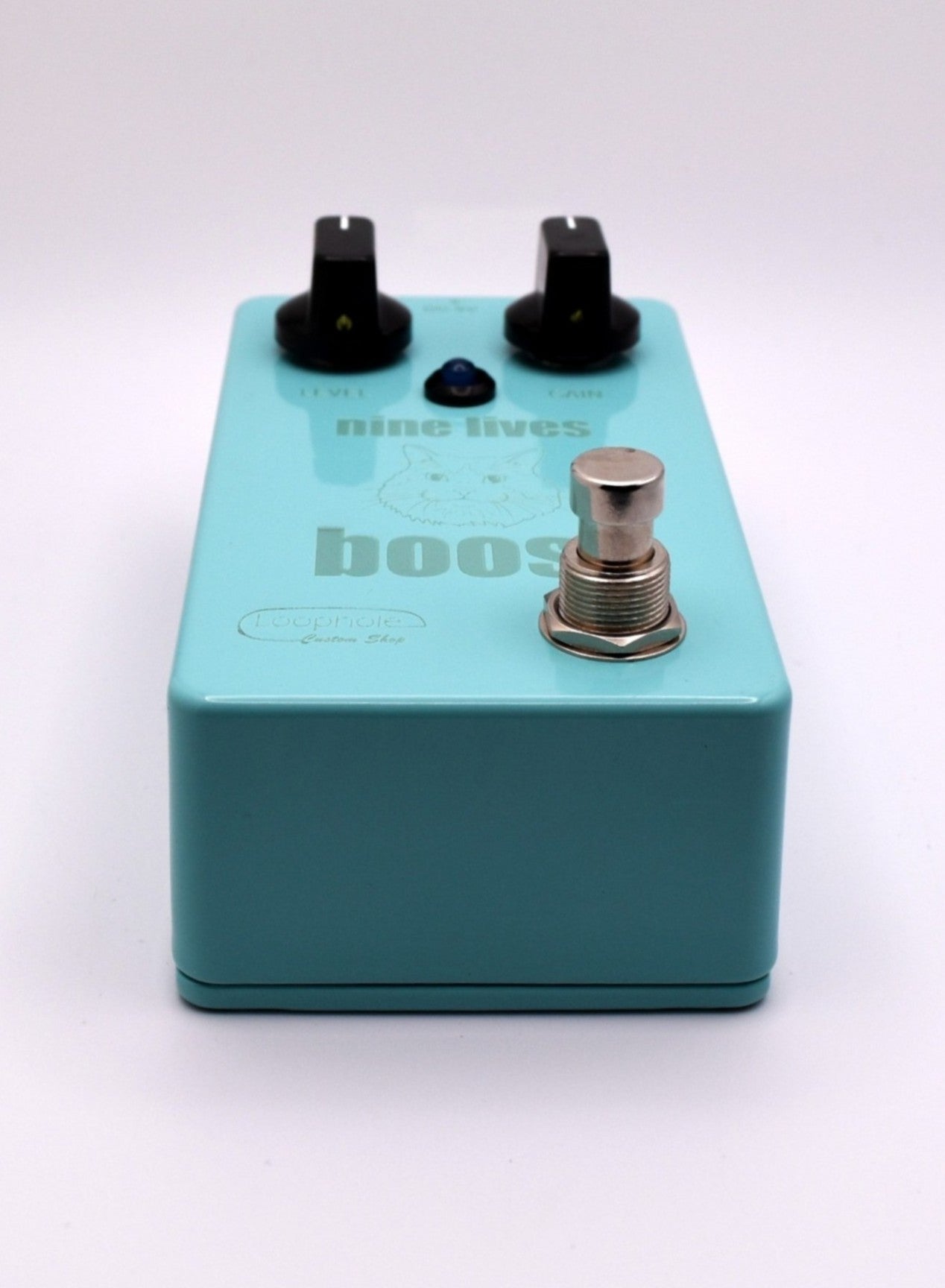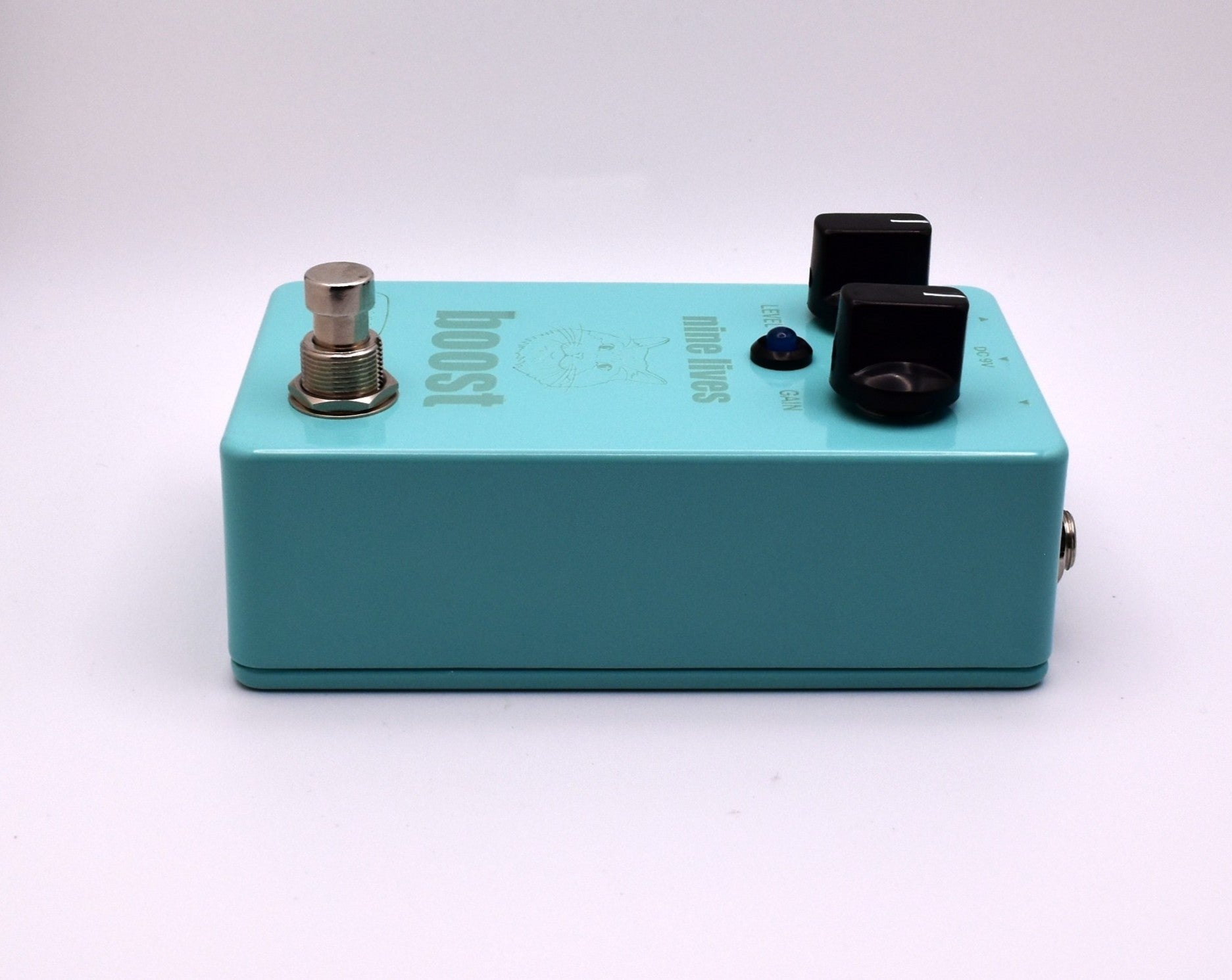 Hand wired / Hand soldered (NO Surface Mount,) True Bypass with a soft click switch, SHO/Channel2 style boost utilizing a low current draw BS170. Controls are simply volume and gain. Laser etched graphics done in house in honor of Tom's purrfect profile.